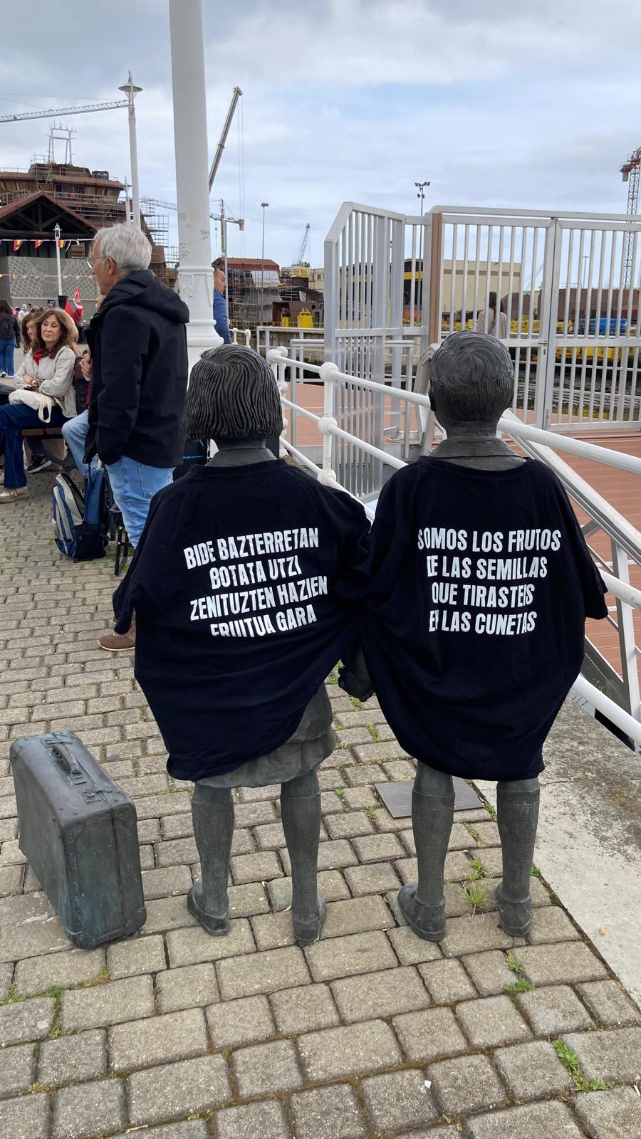 En el Aurresku, la danzarina baila ante el monunmento en homenaje a todas las víctimas de la guerra.