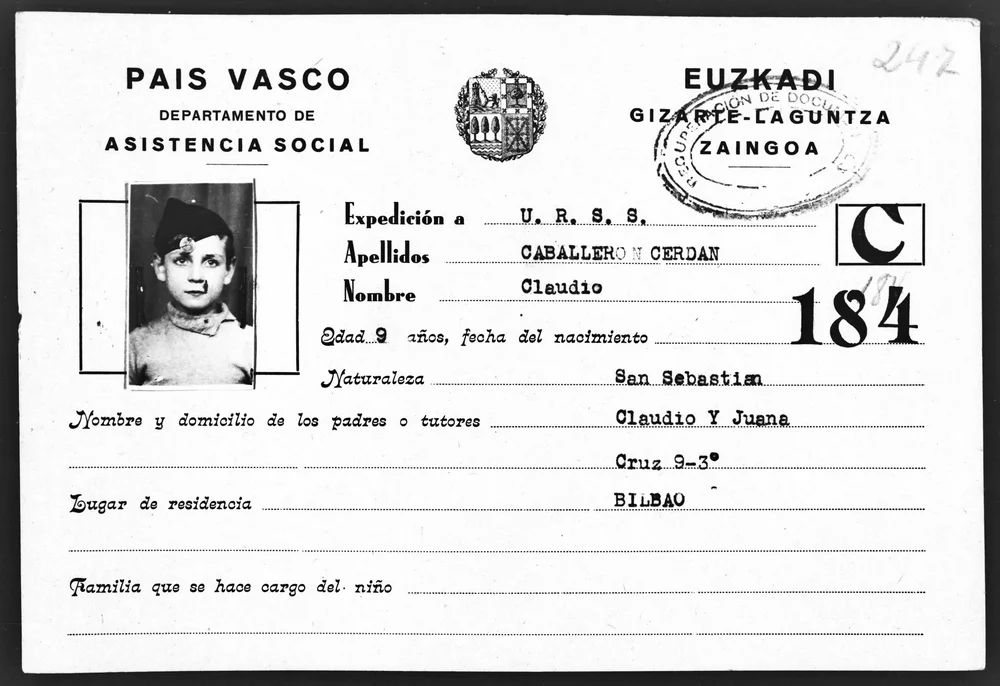 - CABALLERO CERDAN CLAUDIO. San Sebastián 1928. Eupatoria, Sarátov. Obrero de la fábrica Hoz y Martillo de Moscú. Casado con María Angulo. Se repatrió.