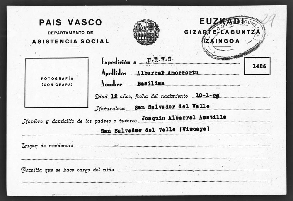 - ALBARRÁN AMARRUTO BASILISA. Bilbao 1924. Kiev, Stalingrado, Escuela de Formación Profesional de Oréjovo. Está casada con Dimas García Camblor. Actualmente está en Cuba con su marido.