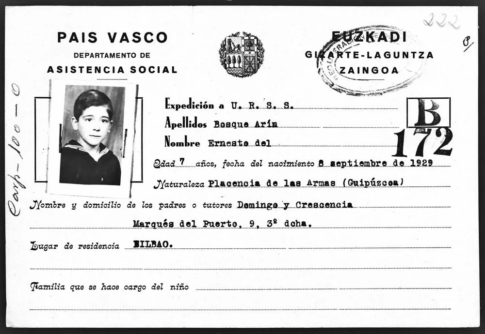 - DEL BOSQUE ARIN ERNESTO. Palencia 1929. Óbninskoye. Tarásovka. Estudiante en la Escuela de Circo (1949). Obrero restaurador en Zagorsk. Terminó el Instituto de Arte Teatral Lunacharski en 1969. Actualmente reside en Moscú y trabaja en el circo. Repatriado en 1993.