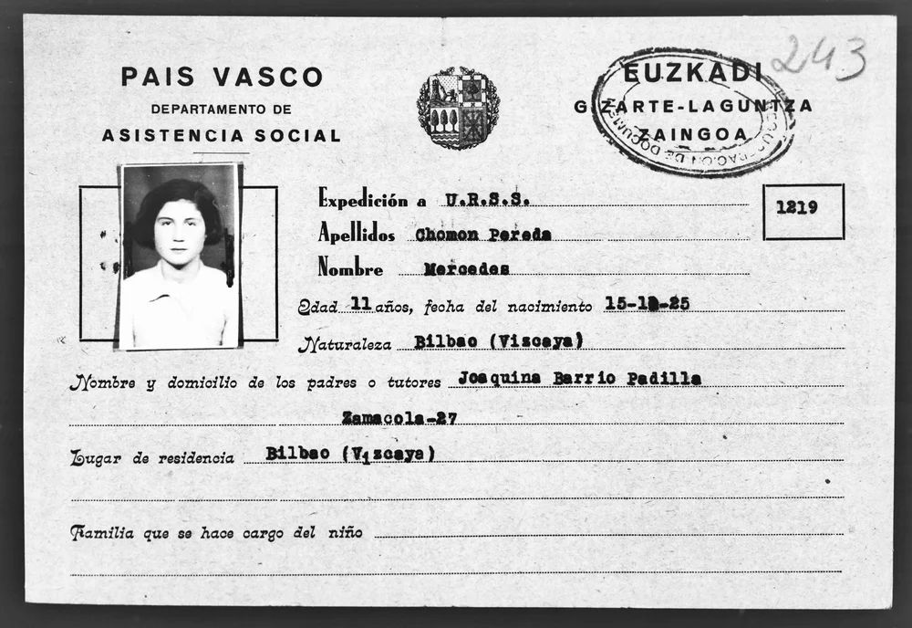 - DÍAZ CHOMÓN MERCEDES. Bilbao 1924. Antes de casarse se llamaba Chomón Pereda Mercedes. Odesa, Sarátov, obrera en Tbilisi, Novyi Svit (Crimea). Casada con Samuel Díaz García. Al Partido se le dio ingresó con fecha 1966. Se repatrió en 1973.