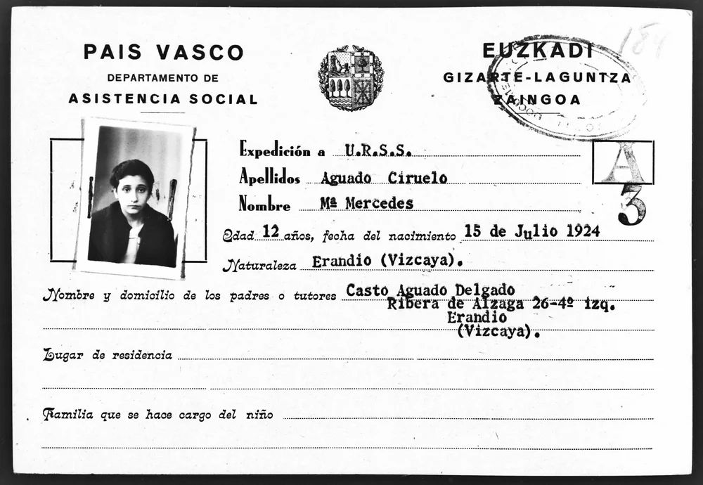 - AGUADO CIRELO MERCEDES. Nació en Bilbao 1924. Casa de niños de Pravda, Moscú, Samarcanda, Cheliábinsk, Estudio en la escuela de Medicina de Moscú, enfermera. Ingresó en el Partido en 1946. Se repatrió a España.