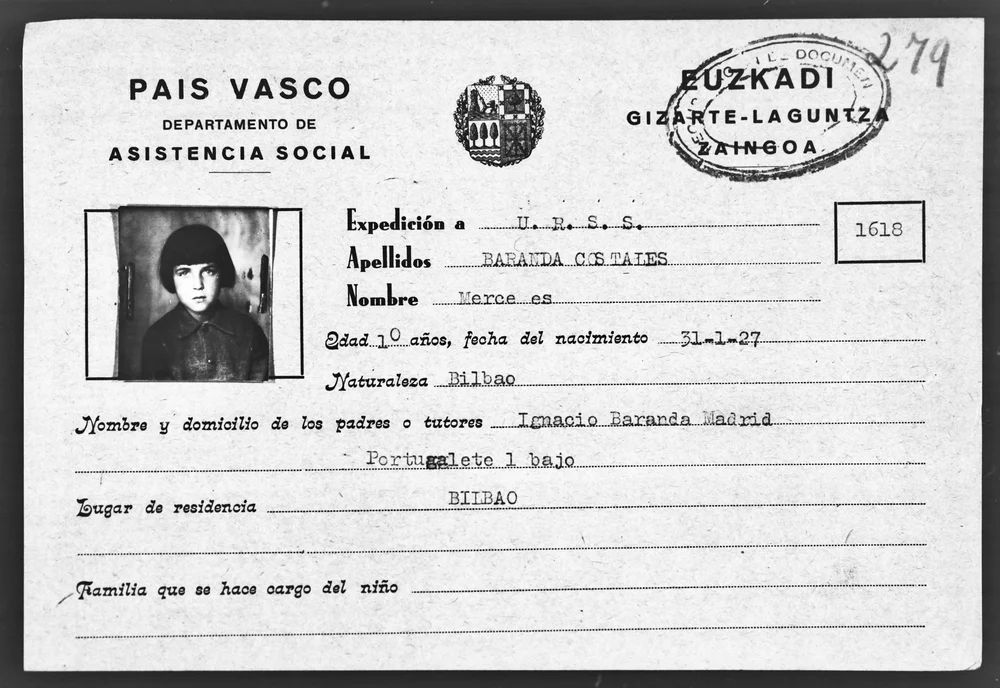 - BARANDA COSTALES MERCEDES. Bilbao 1928. Odesa, Sarátov, Moscú. Se trasladó a Tbilisi donde reside hasta la actualidad. Casada con Manuel Taundez. Se repatrió en 1993.