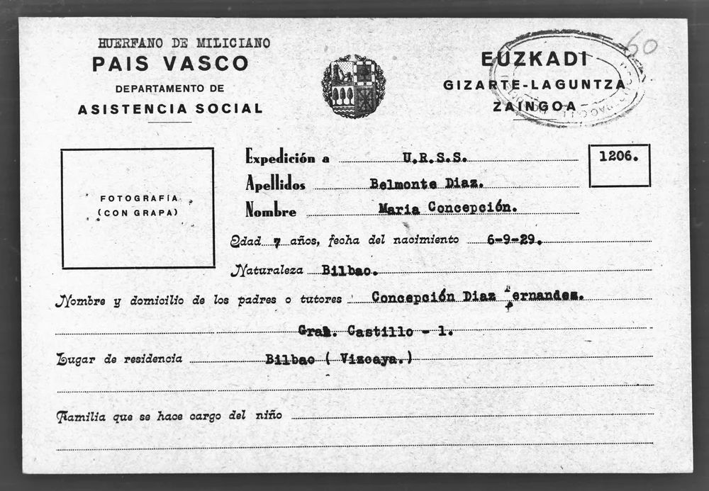 - BELMONTE DÍAZ CONCHITA. Bilbao 1930. Odesa, Sarátov, Nakhabino, Liúbertsy. Actualmente trabaja en la fábrica Dzerzhinski de Izium (reg. de Járkov) de control de aparatos de óptica. Se repatrió en 1994.